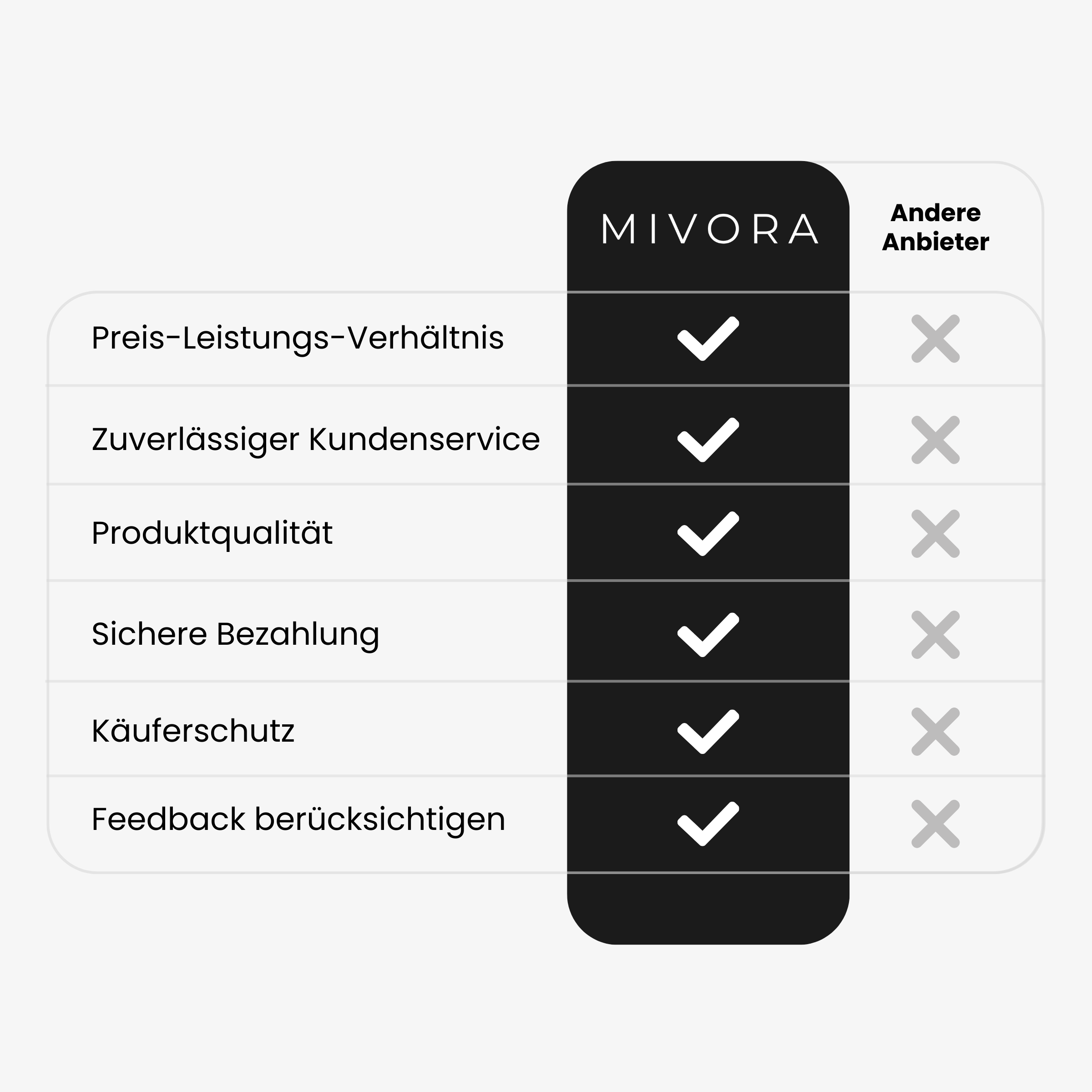 Neben qualitativ hochwertigen Produkten zu fairen Preisen legen wir besonderen Wert auf die Bedürfnisse unserer Kunden. Um ihre Zufriedenheit sowie ein einfaches und vertrauenswürdiges Kauferlebnis zu gewährleisten, setzten wir auf sichere Zahlungsanbieter, die einen umfassenden Käuferschutz anbieten.