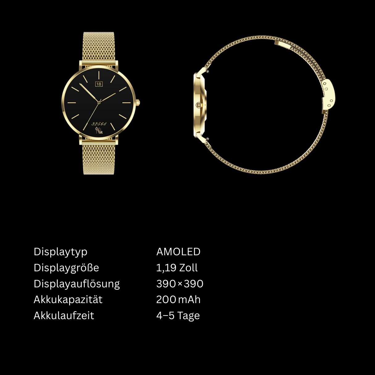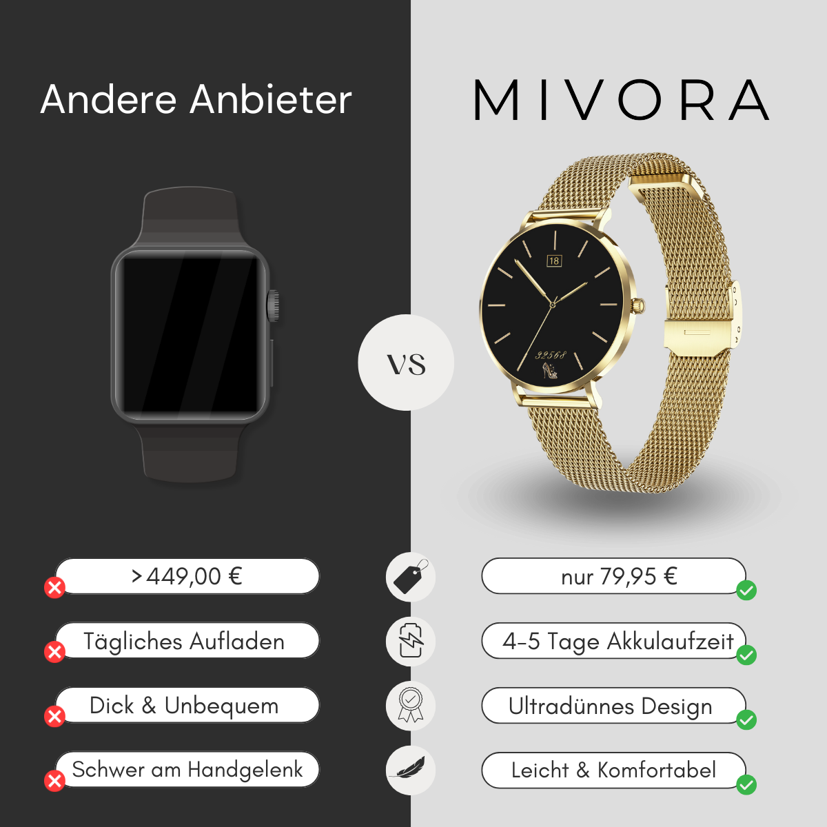 Mit ihrem modischen Design passt die Elegenza Smartwatch perfekt zu jedem deiner Outfits – sei es als stilvolles Accessoire im Business-Look, kombiniert mit einem schlichten T-Shirt oder als Ergänzung zu einem eleganten Kleid. Du betonst stets deinen eigenen Stil und kannst sicher sein, dass liebevolle Komplimente garantiert sind.