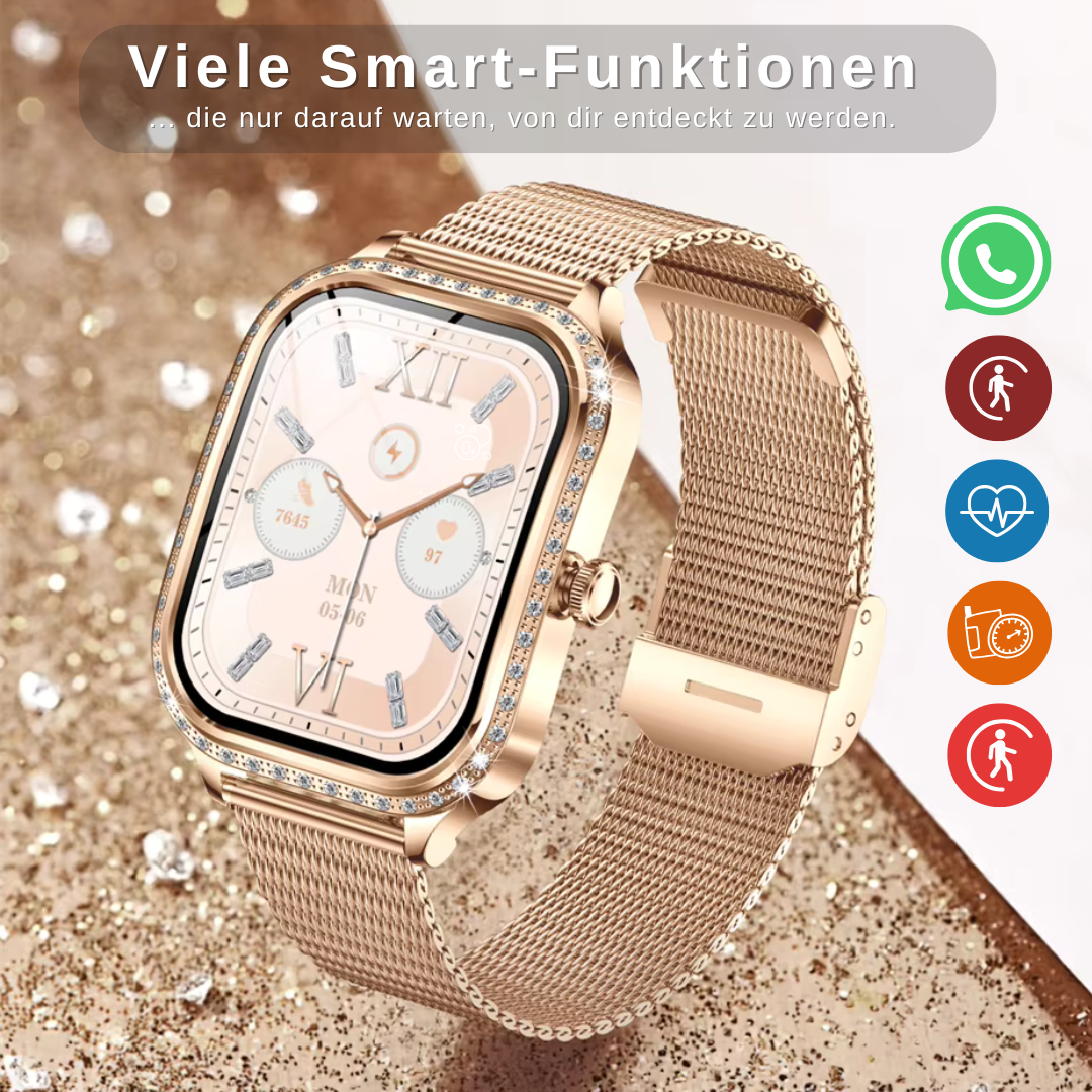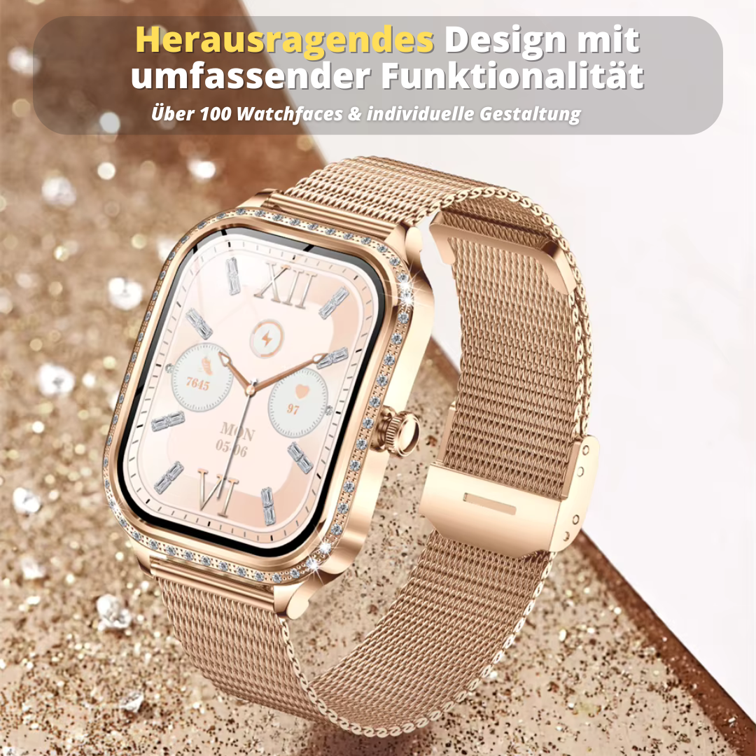 Im Gegensatz zu vielen herkömmlichen Smartwatches verfügt die Uhr über ein glänzendes und edles Design, das pure Eleganz ausstrahlt. Die hochwertigen Materialien und die präzise Verarbeitung verleihen ihr einen luxuriösen Look, der jedes Outfit aufwertet. Gleichzeitig bietet sie ein komfortables Tragegefühl und ist der perfekte Begleiter für deinen modernen Lebensstil.