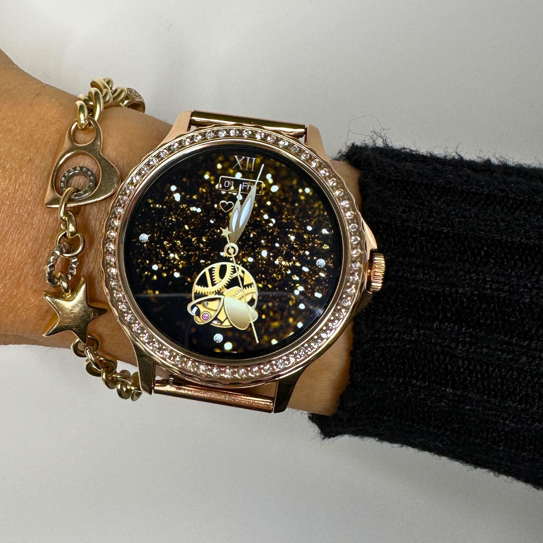 Tauche ein in pure Eleganz mit unserer brandneuen Serenza Smartwatch! Das atemberaubende Diamant-Design und das personalisierbare Zifferblatt machen diese Uhr zum absoluten Blickfang. Die Uhr vereint stilvolles Design mit modernster Technologie für ein einzigartiges Trageerlebnis.